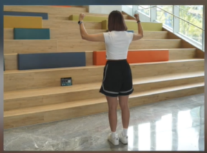 4. 接著雙手舉「大力士」的姿勢,偵測時手臂須呈現90度,維持動作三秒,偵測不穩時,可前後調整距離,當系統偵測感應完成,就可開始課程體驗