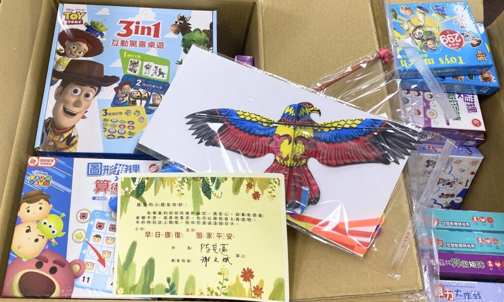 高市教育局提供益智玩具及關懷卡片陪伴被隔離的學生。 圖:高雄市教育局提供