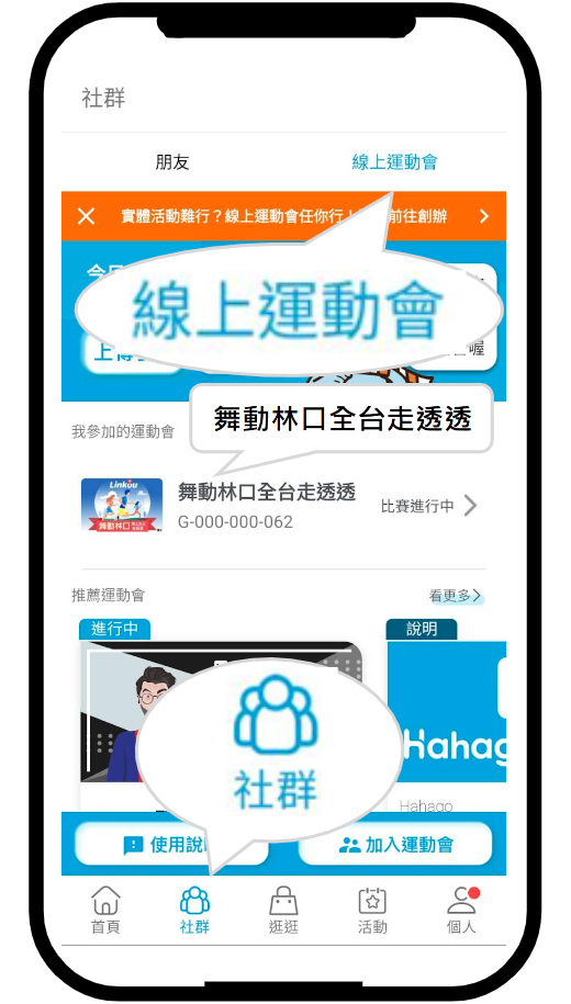 下載 hahago app完成註冊,活動期間登入app選擇參與項目,活動期間即可進行步數、公里收及卡路里累點。