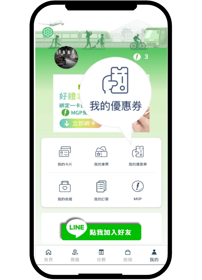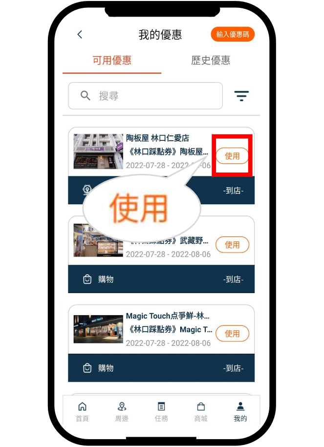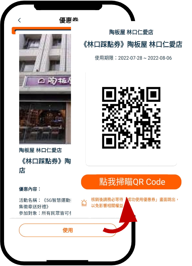 下載Mobii app完成註冊,活動期間登入app即可獲得22張林口店家踩點券,使用踩點券至相對應店家掃碼即完成踩點。