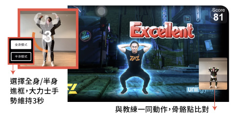【AR動滋動 x Uniigym】,這是⼀款兼具科技、專業與休閒娛樂的互動體感健⾝服務,近千堂以上課程,內容豐富多元包含有氧/燃脂/塑⾝/肌⼒/瑜珈/親⼦…等全齡分類,滿⾜各種不同運動需求。遊戲化的介⾯與特效設計增添了運動趣味性,⽽AI體感偵測、AR隨⾝教練及即時反饋運動數據,更激勵運動成效。現在,只要⼀機在⼿,打開⼿機APP,就可以隨時隨地,不受場地、時間之限制,享受便利的運動時光。