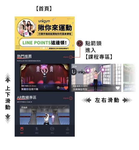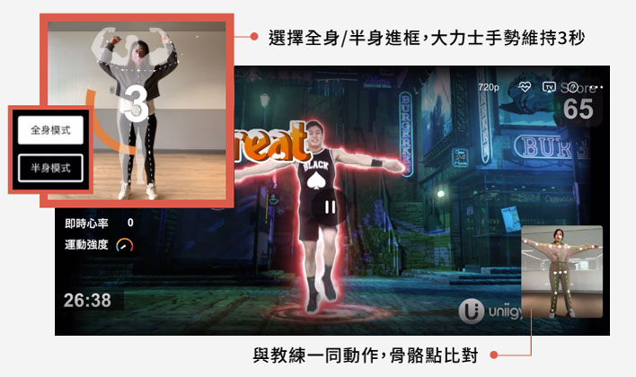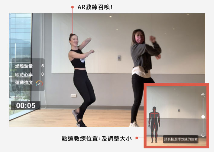 教練出現在你客廳、戶外,還可在旁對比動作!多人一起不孤單。