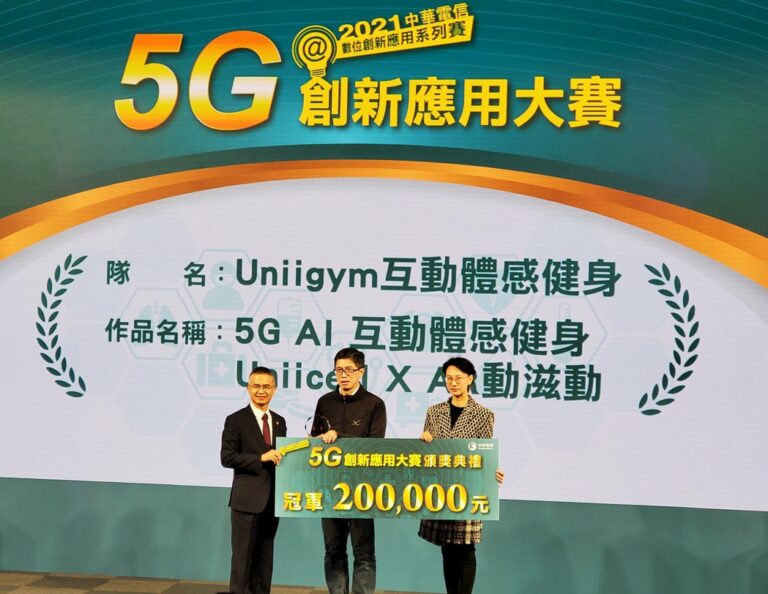 本次競賽,由TTA科技新創團隊-優力勁聯(股)公司Uniigym所設計開發的「5G AI 互動體感健身 Uniicell X AR動滋動」脫穎而出獲得冠軍,此作品透過中華電信5G高速率的特性,結合行動裝置鏡頭捕捉20多個人體骨骼位點,AI精準分析動作並給予校正回饋及運動數據追蹤,即時告訴使用者姿勢是否正確,同時具有豐富多元的課程內容,讓使用者透過行動裝置隨身隨地打造專屬健身房。