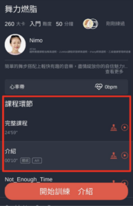 點選要運動的課程,開啟之後在「課程環節」選擇課程小節,並點選下紅色「開始訓練」鈕